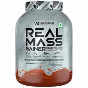 BigMuscles Nutrition Real Mass Gainer is a calorie-dense mass gainer designed to support weight gain and muscle building. It provides a combination of protein, carbohydrates, BCAAs, and glutamine to help users increase daily calorie intake, improve workout performance, and support recovery. This product is commonly used by beginners and hard gainers in India who struggle to gain weight through food alone.